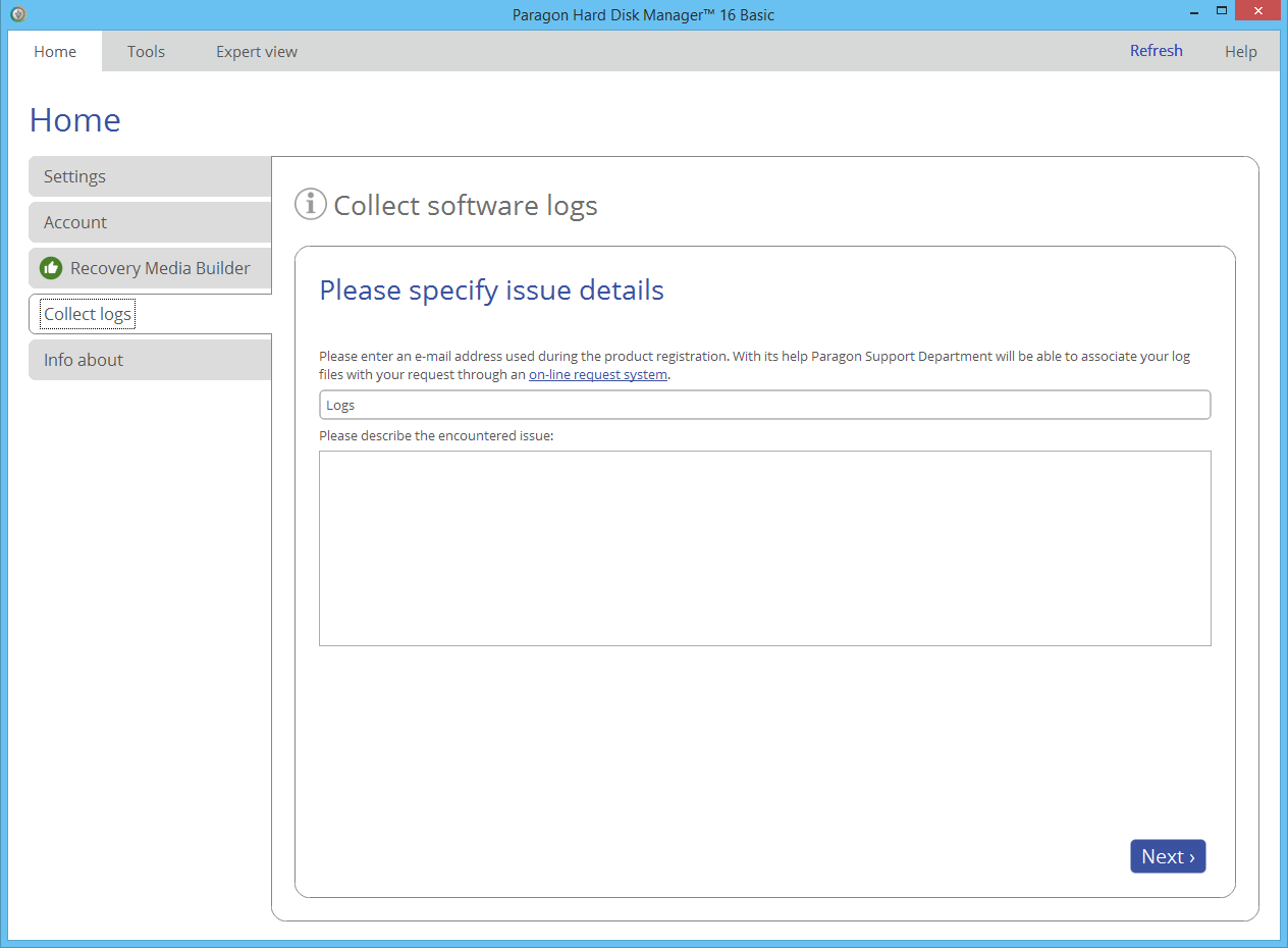 Recovery Media Builder – przygotowuje środowisko rozruchowe oparte na WinPE na wybranym nośniku: tworzy obraz ISO i wypala go na dysku CD / DVD lub pamięci flash USB.