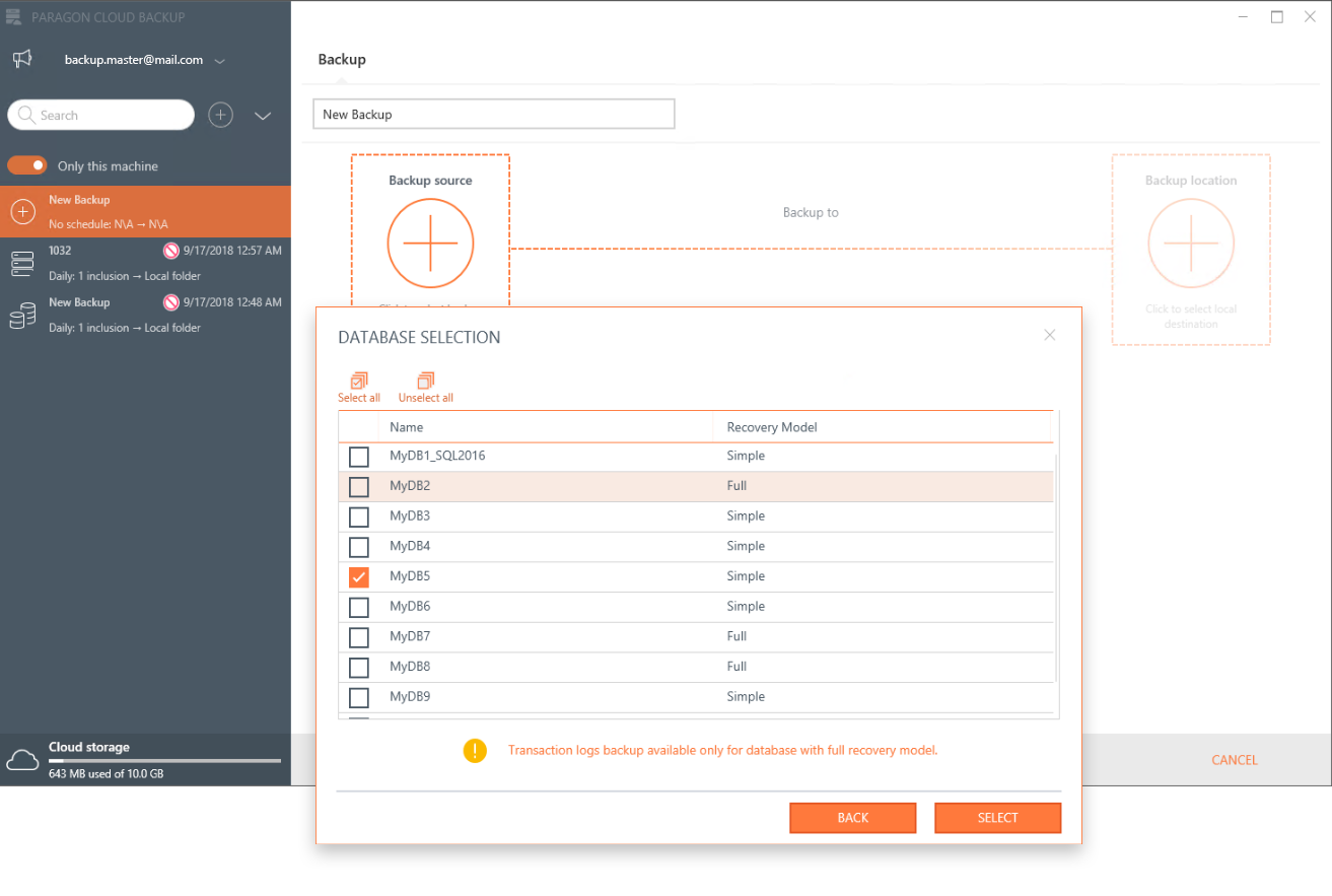 Paragon Backup for Microsoft SQL daje Ci następujące możliwości: