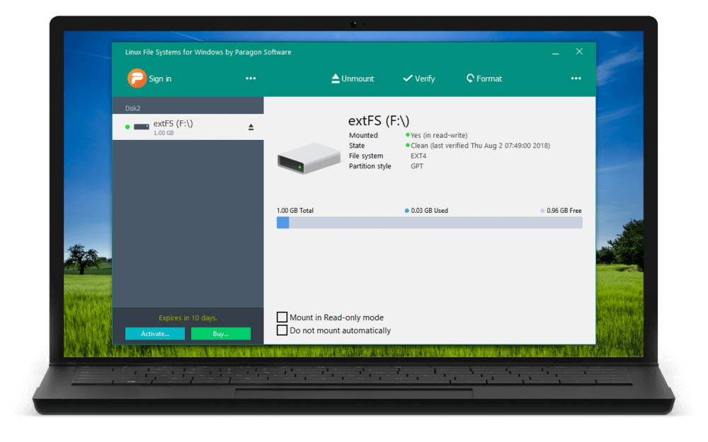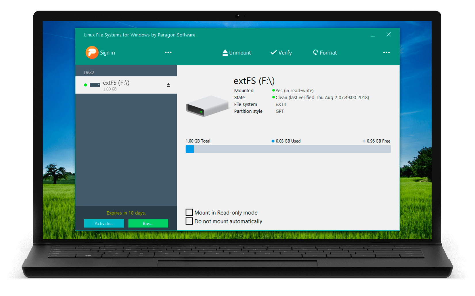extFS jest jednym z podstawowych systemów plików Linux. Za pomocą sterownika na płycie można podłączyć urządzenia pamięci masowej extFS do komputera i uzyskać dostęp do ich zawartości w celu odczytu, kopiowania lub modyfikacji.