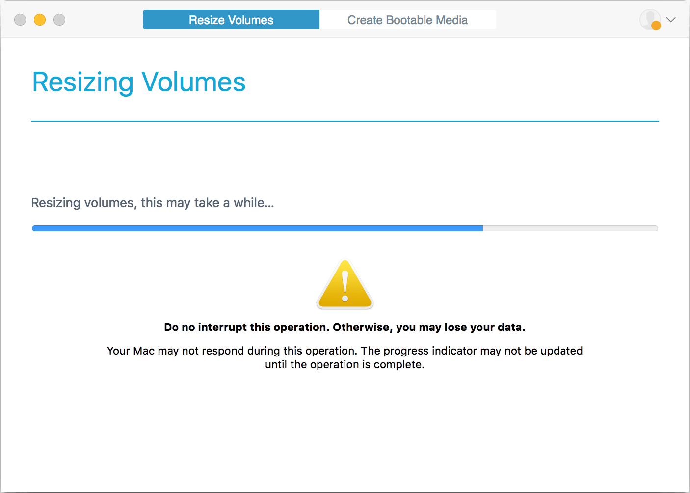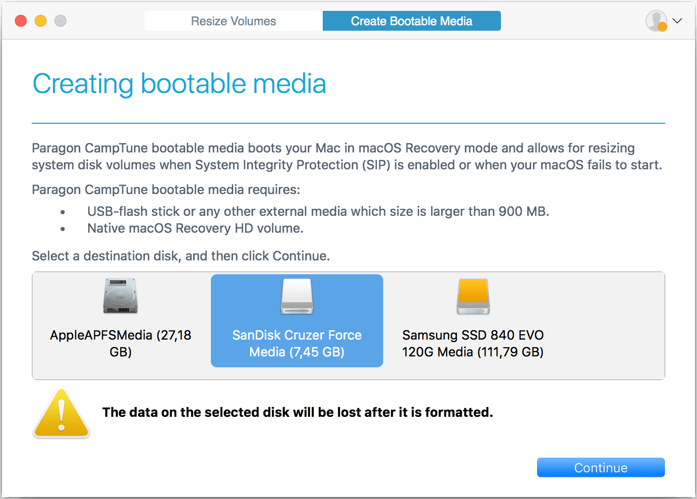 Paragon CampTune może wykonywać operacje zmiany rozmiaru z dyskiem systemowym w systemie MacOS, nawet przy włączonej ochronie integralności systemu |
